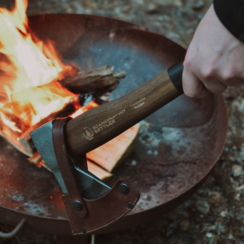 A practical essential with timeless character—making our outdoor axe an unforgettable gift for anyone who loves the wilderness. Crafted with an American hickory handle and a durable steel head, this versatile tool is built for both splitting firewood and more precise tasks in the forest or garden. Its lightweight, resilient design makes it easy to bring along on any adventure, from weekend hikes to nights in the Swedish backcountry. More than just a tool, it embodies the spirit of Scandinavian Settler. Each axe comes with a vegetable-tanned leather sheath—an added touch of craftsmanship for a gift that’s made to be used, kept, and appreciated for years to come.